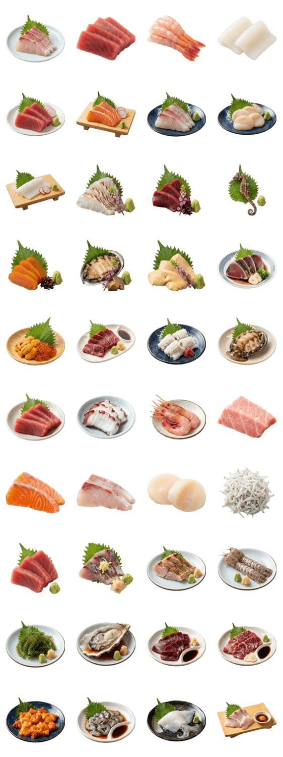 刺身 実写 写真風 リアル 海鮮 魚 まぐろ サーモン いか えび ほたて いくら 和食 日本料理 グルメ しずる感 美味しそう 食べ物 皿 盛り合わせ 新鮮 トーク LINE