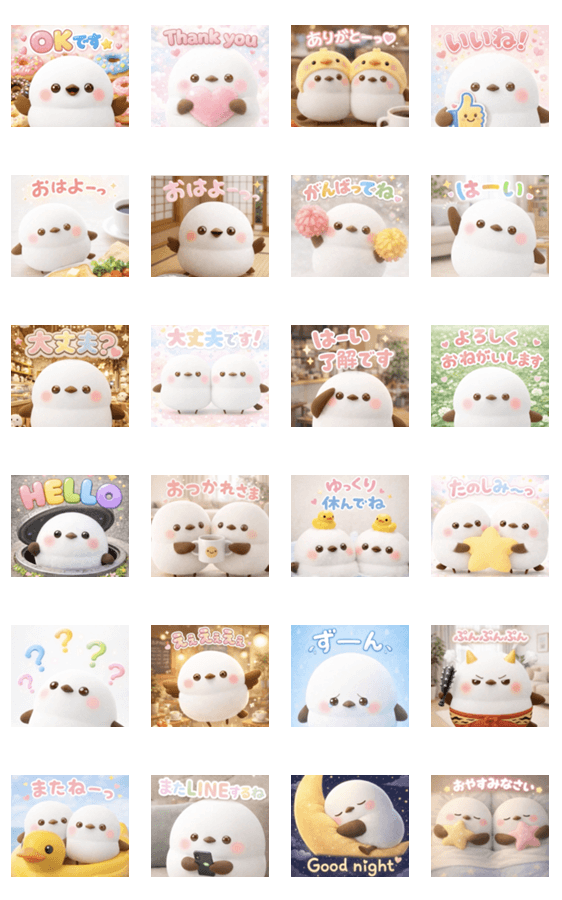 毎日の会話で使える♡シマエナガの基本のポップアップスタンプです。