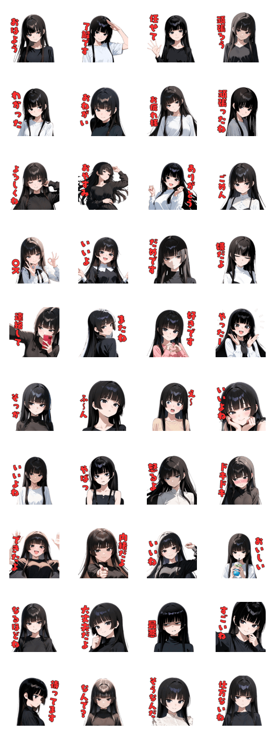 ちょっと寂しがりで甘えんぼ。 前髪ぱっつんの病みかわ女子が、素直な気持ちをゆるっと届ける毎日使えるスタンプです。