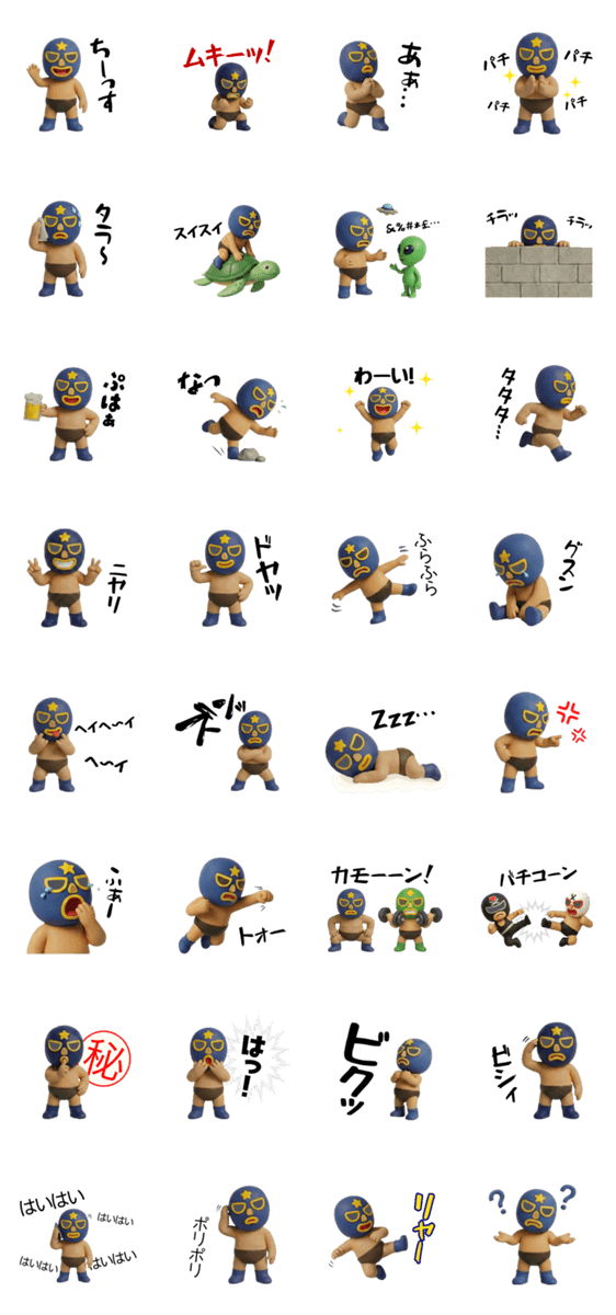 奮闘マスクマン19 擬音とプロレス【3D】 -LINEスタンプマニア
