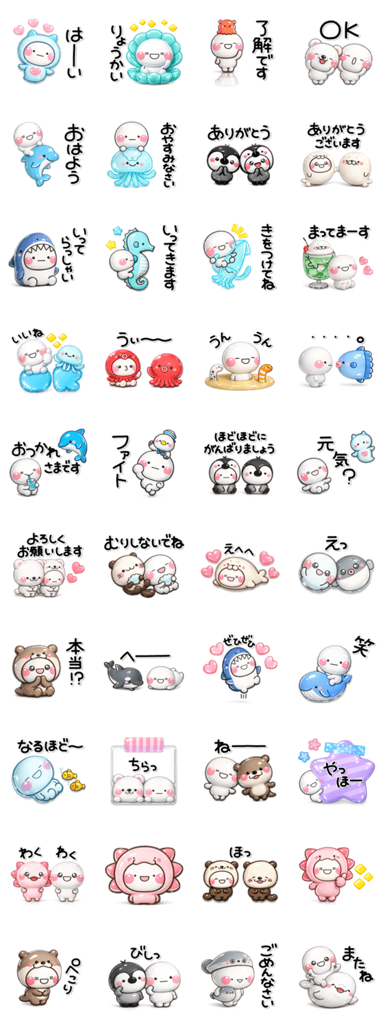 ぷくつやシール風♡ず~っと使える海生き物 -LINEスタンプマニア