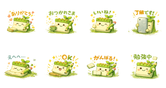 がんばり屋ノートの「かきかき」が、あなたの毎日をそっと応援 やさしくて前向きな言葉がいっぱいの癒し系スタンプです。 勉強・お仕事・日常トークにぴったり