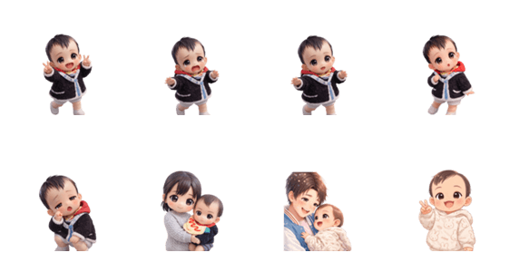 大きな瞳ともこもこジャケットがチャームポイント!日常で使える可愛いベビーのスタンプです。