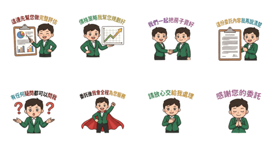 | スタンプ説明 | Stickers designed for listing explanations and pricing discussions. Help real estate agents communicate clearly and build client trust. |