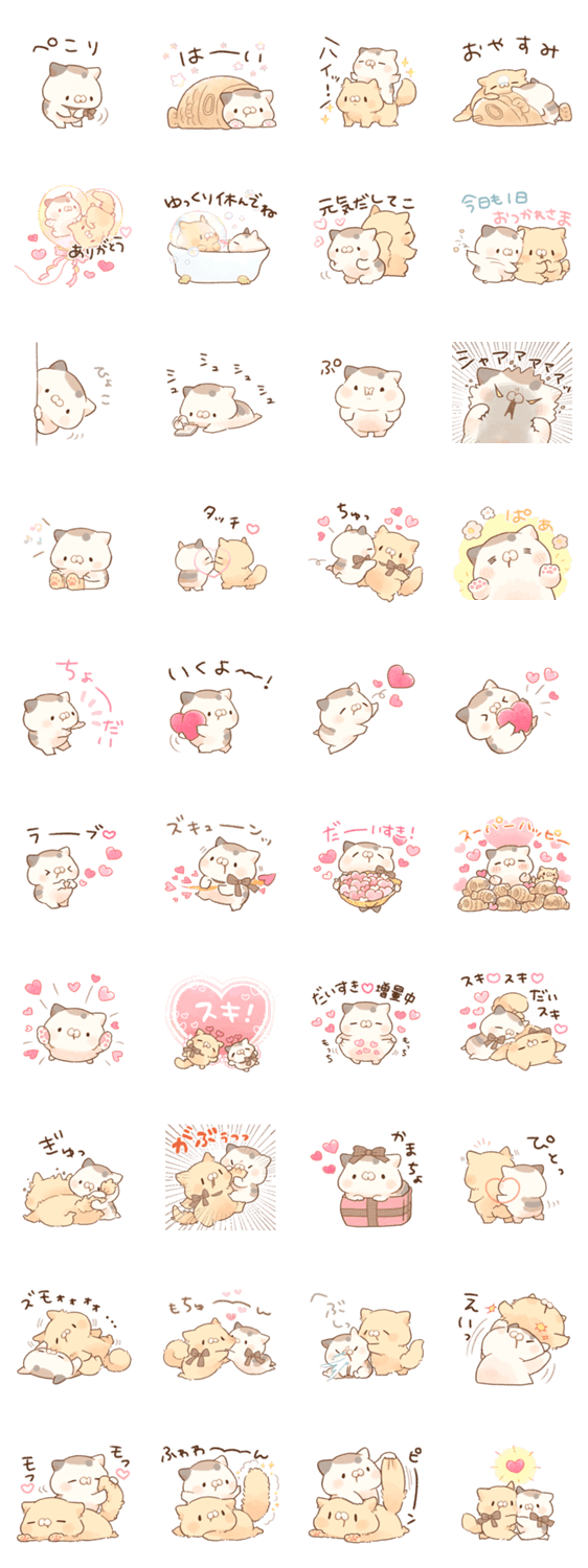 となりのにゃんこ ミケちゃんのスタンプです。クリームくんスタンプとペアで使えるデザイン♪ ミケクリ/カップル/猫/恋人/夫婦
