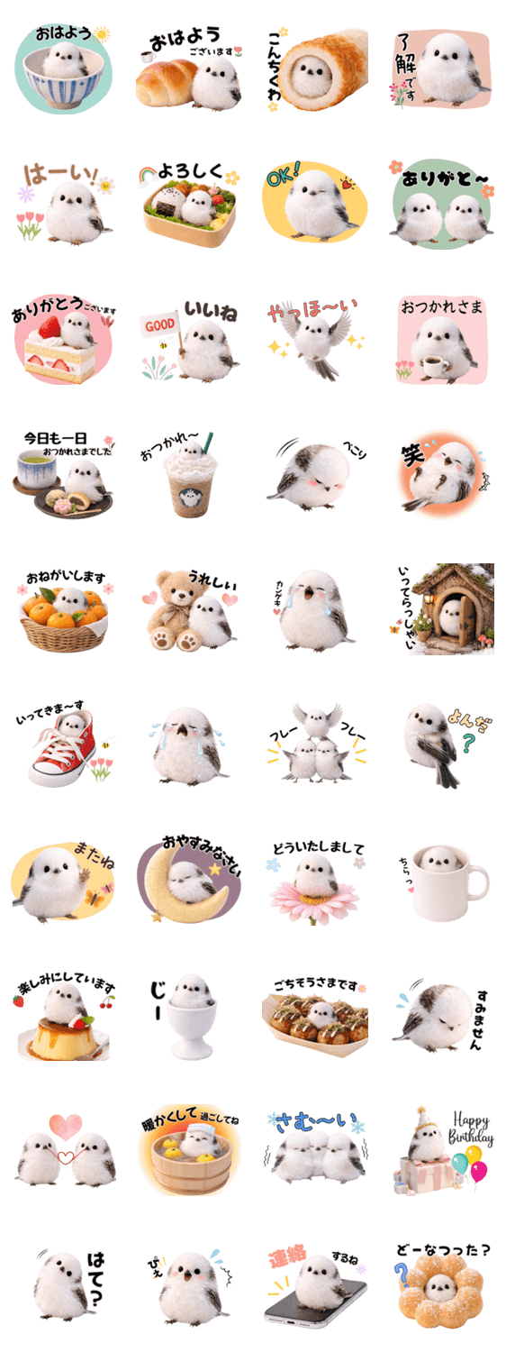 ふわころモフモフのとっても可愛いシマエナガのスタンプです。しまえなが/とり/鳥/白い小鳥/毎日使える/ずっと使える/日常会話/リアル
