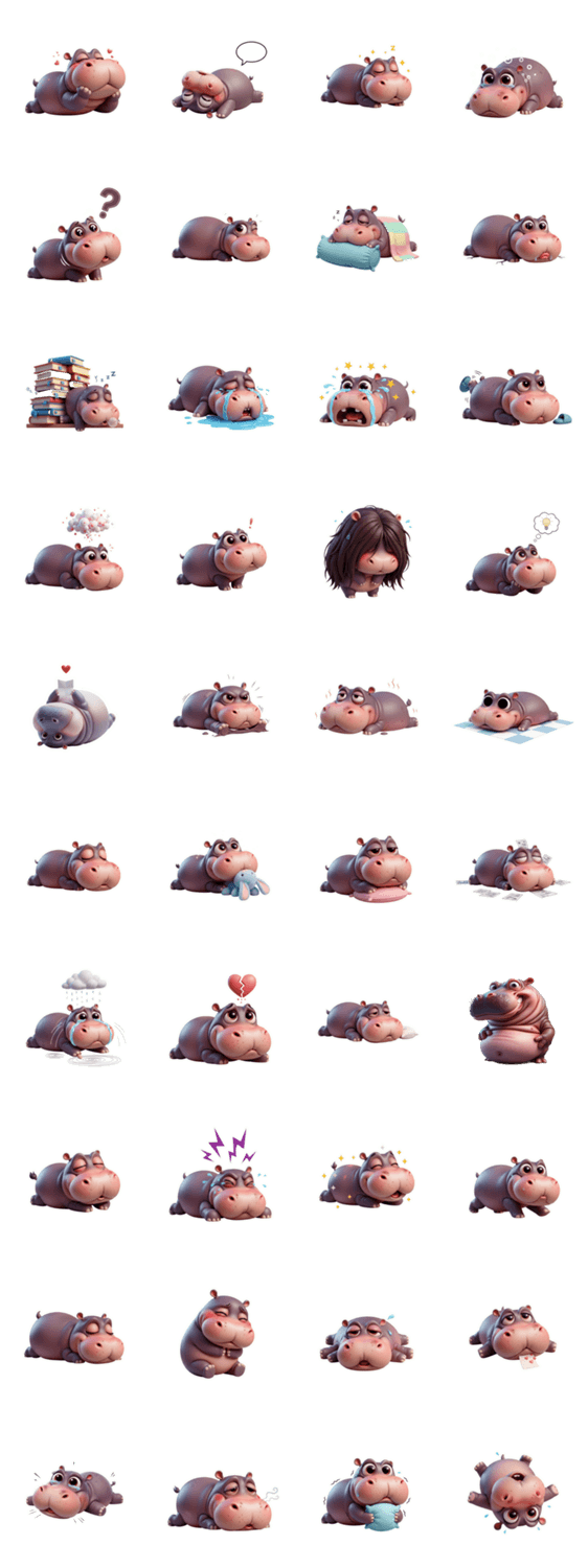 疲れた時や落ち込んだ時にぴったり!この丸くて可愛いカバのスタンプは、あなたに最高の癒やしと元気を届けます。仕事や勉強、どんな困難にも、愛らしい表情とポーズで全力