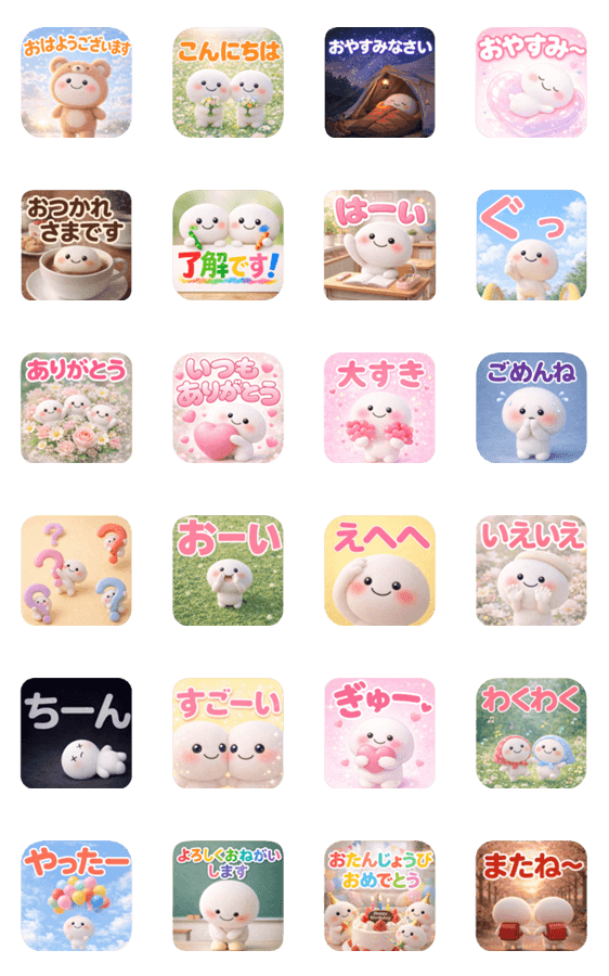 シンプルな白くて丸い人♡日常スタンプ。うごく/3D/しろくてまるい人間/挨拶/無難/基本/敬語/ポップアップ/気づかい/気持ち/飛び出す/動く/でかもじ/デカ文字/山田まぽん作