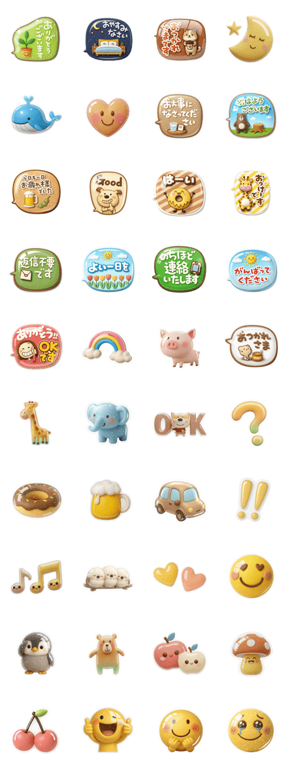ぷっくり感が可愛い、写真に貼ったり、アレンジ機能にも使えそうなシール風。毎日使える吹き出しもあります。