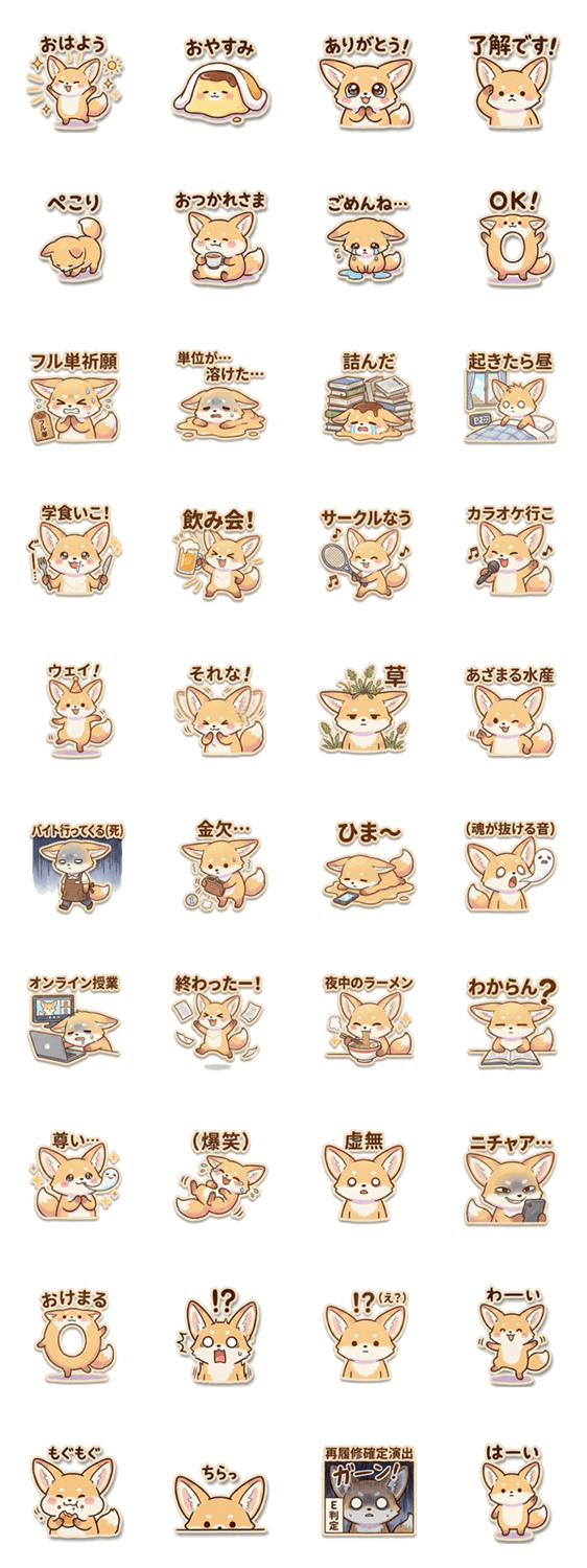 ふくふくキツネ:新大学生・デビュー -LINEスタンプマニア