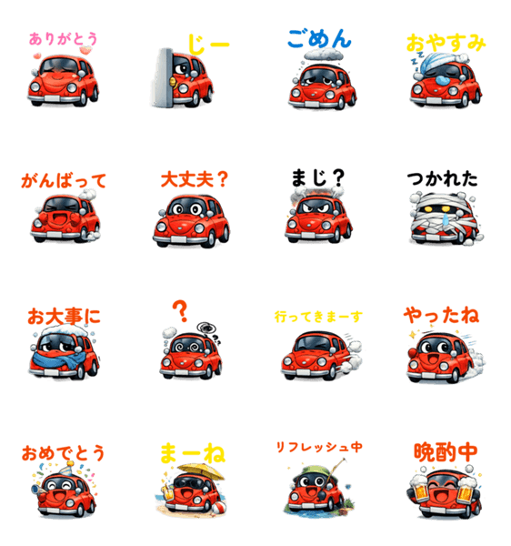 見ているだけで癒される、まるっこい赤の車スタンプ。感情表現も豊かで、トークが楽しくなる♪シンプルで使いやすい万能スタンプです