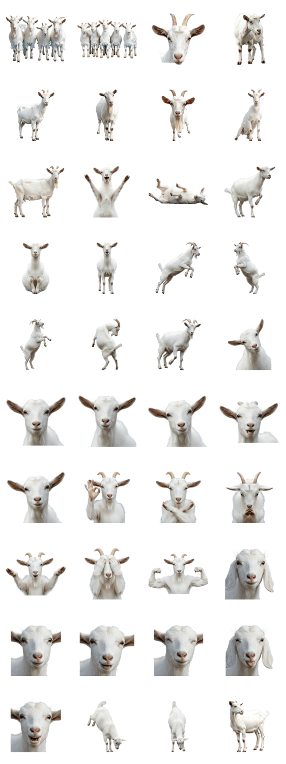 写真風 リアル 山羊 牧場 動物 白い毛 もこもこ かわいい 自然 ナチュラル 田舎 風景 のどか 牧草地 癒し系 LINEスタンプ 日常 使いやすい