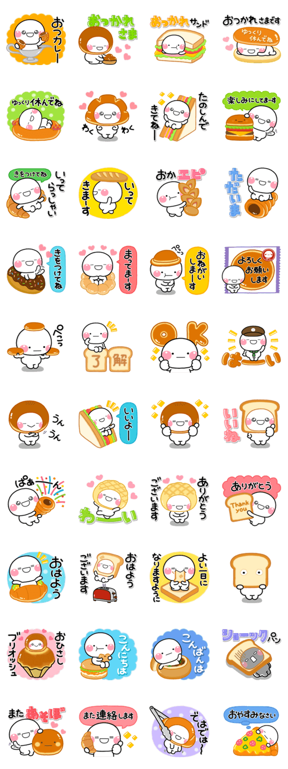 パンとしろまるの美味しそうでカラフルな使いやすいスタンプです。