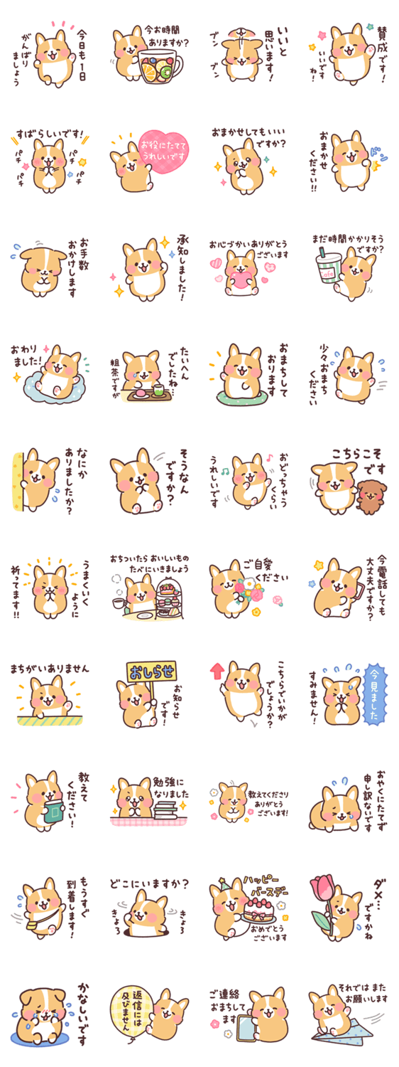 まるまるコーギーの優しい敬語スタンプです。やさしさが伝わる長文のメッセージで、スタンプひとつでも送りやすい!