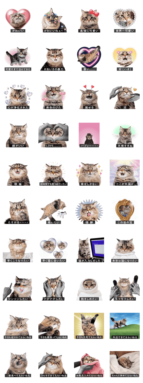 表情がちょっとゆたかなサイベリアンのヤマネコくんのスタンプ第十八弾。猫に脳を焼かれた人向けのスタンプ40セット!猫以外の動物や子供、推しなどにも使いやすいかも。