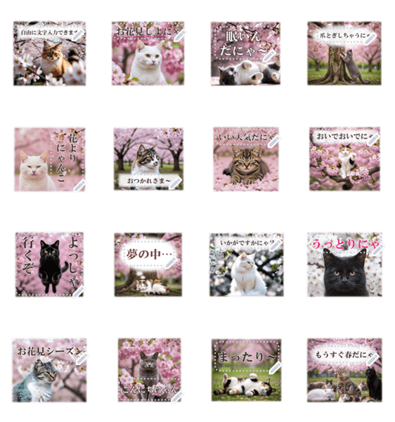 文字入力できるポップ&キュートな可愛いリアル猫×さくら❤ にゃんこと桜の花や木♡お花見気分♪春を感じるフラワーフレーム♪猫の日メッセージスタンプ♪花よりにゃんこ?! 現在この商品は一部のスマートフォン版LINE 10.3.0以上のトークルームでのみ使用できます。動作環境の最新情報はヘルプをご確認ください。