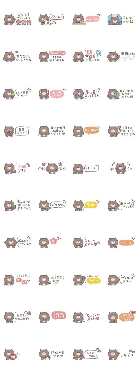 一つあると便利な小さくてかわいいくまのスタンプです。 くま/大人可愛い/シンプル/あいさつ/吹き出し/くすみカラー/省スペース/春
