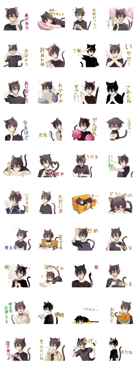 黒猫系男子の春な日常 -LINEスタンプマニア