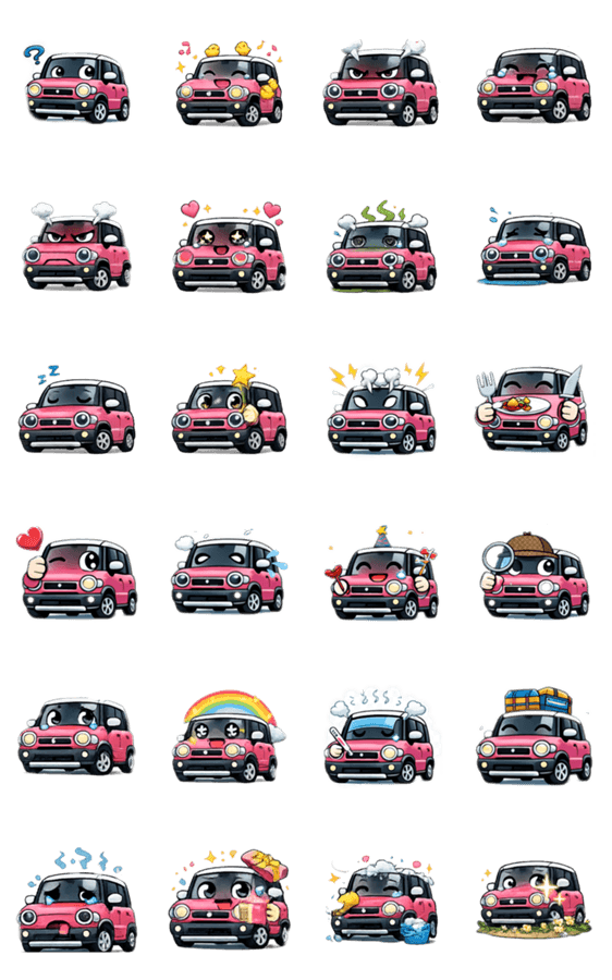 ゆるかわな軽SUVが喜怒哀楽たっぷりで登場!あいさつ・返事・リアクションなど毎日のトークで大活躍。車好きも思わず使いたくなる、実用性バツグンのスタンプです。