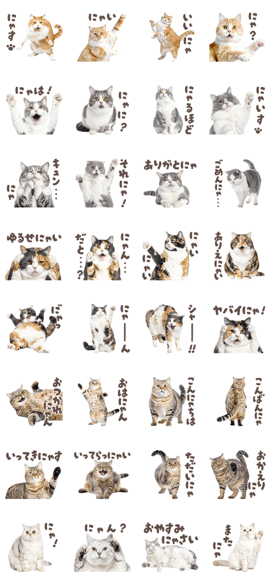 可愛いでぶネコの写真スタンプ。毎日使いやすい返事挨拶使える定番面白いネタゆるいだるい。ネガティブポジティブな推しねこ科動物大人家族先輩友達のプレゼントにおすすめ