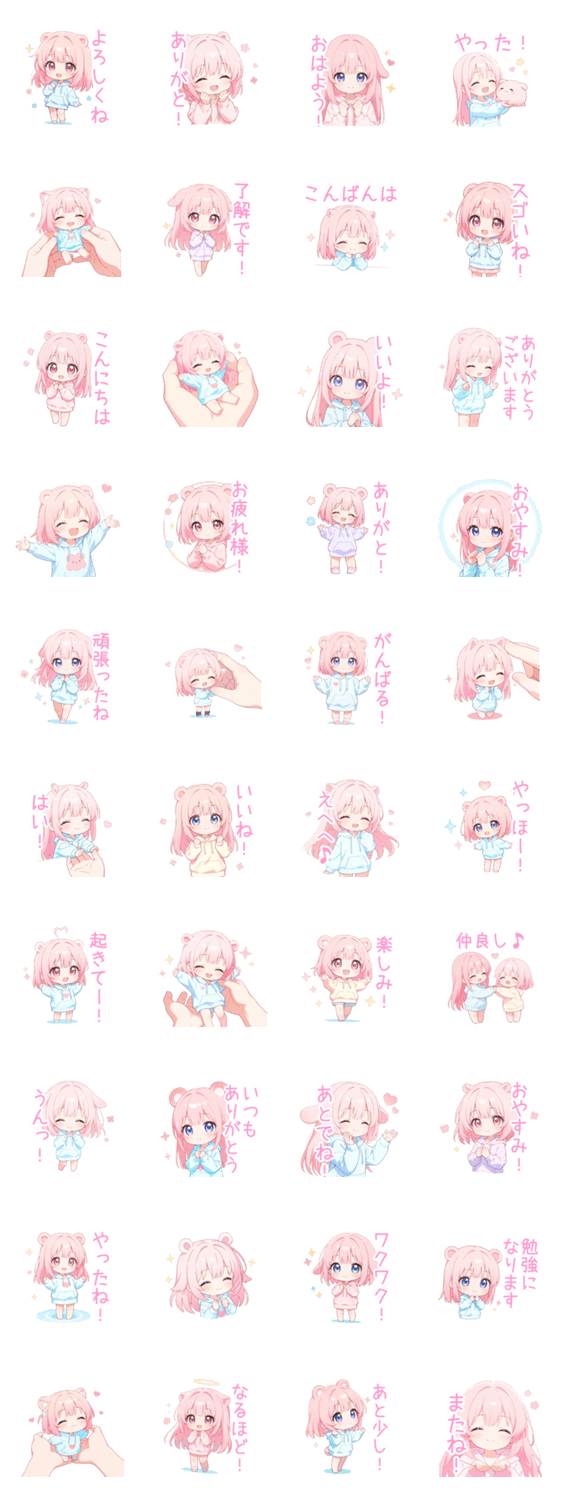 くま耳/クマ耳/フーディー/可愛い/量産型/ピンク/日常/水色/パーカー/パステル/女の子/女子/ガーリー/ミニキャラ/キュート/ファンシー/毎日使える/挨拶/ちびキャラ/癒し