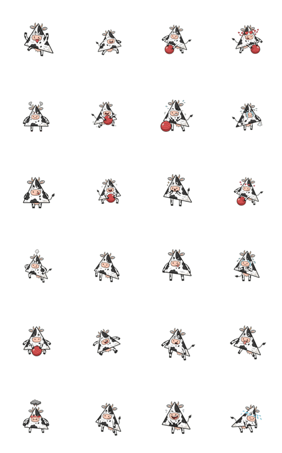 ユニークな三角の牛があなたのチャットを盛り上げます! いたずら好きで愛らしい表情は、どんな会話にも笑いと楽しさをもたらすこと間違いなし。個性あふれるこのスタンプ