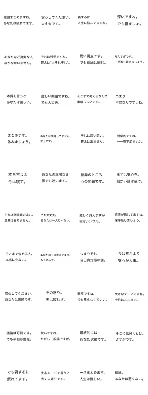 チャッピーが優しく話を終わらせてくれます。使いやすい/毎日使える/AI/セリフ/相談/返事/日常/会話/ネタ/シュール/でか文字/チャッピー構文/AI構文