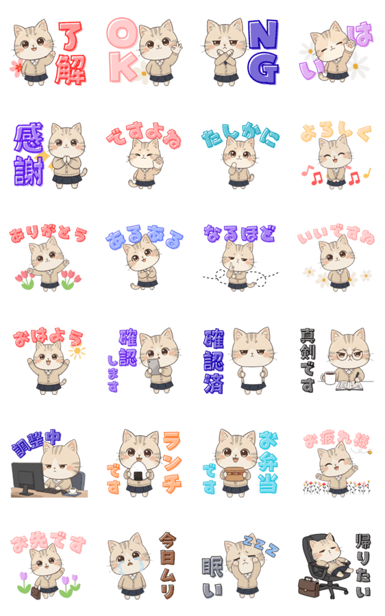 同僚に使えるデカ文字あいさつOL猫ミケ先輩 -LINEスタンプマニア