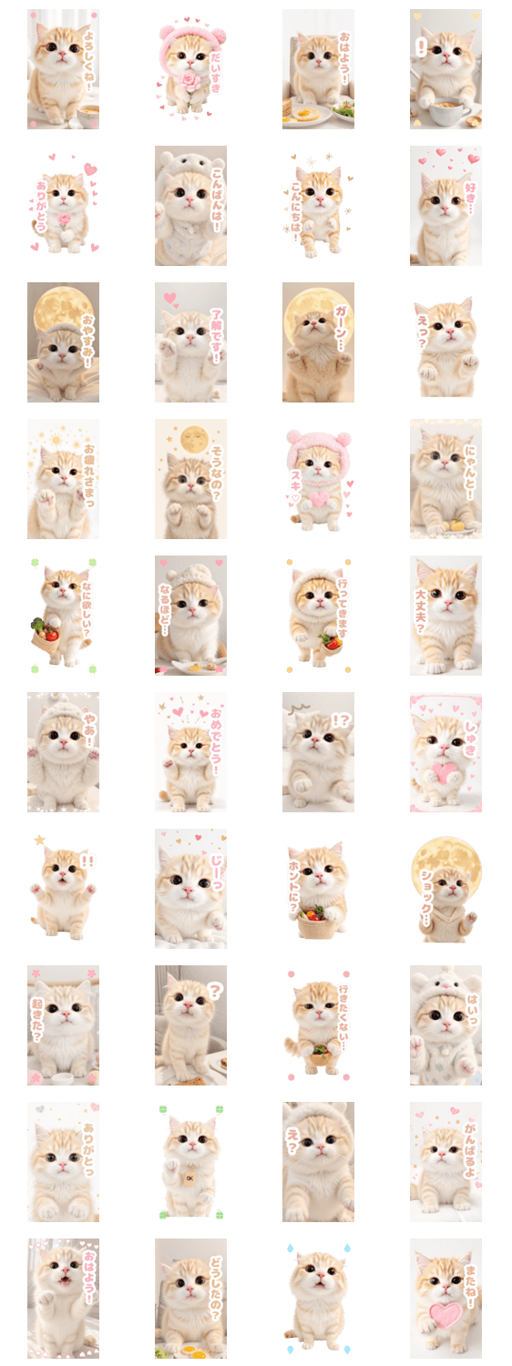 かわいい/可愛い/癒し/挨拶/毎日使える/ねこ/猫/ネコ/子猫/パステル/ハート/もふもふ/ふわふわ/スコティッシュフォールド/ラブリー/生活/お花/寝間着帽子/買い物/お部屋 ※このスタンプはトークルームで大きく表示されるBIGスタンプです。