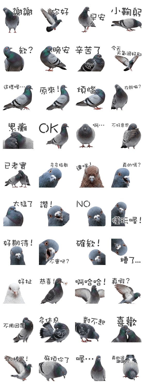 鳩 あいさつ 挨拶 日常 使いやすい 実写 写真風 リアル 鳥 野鳥 かわいい クール 反応系 トーク用 デカ文字 目立つ LINEスタンプ 台湾華語版 繁體中文 人気