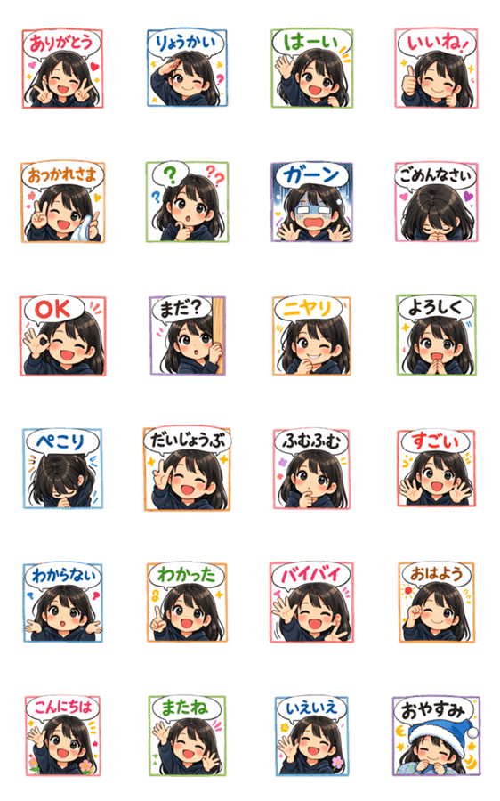 うちの娘をデフォルメしたオリジナルスタンプです。 日常会話で使いやすいセリフを収録しています。 毎日のコミュニケーションにぜひご活用ください。