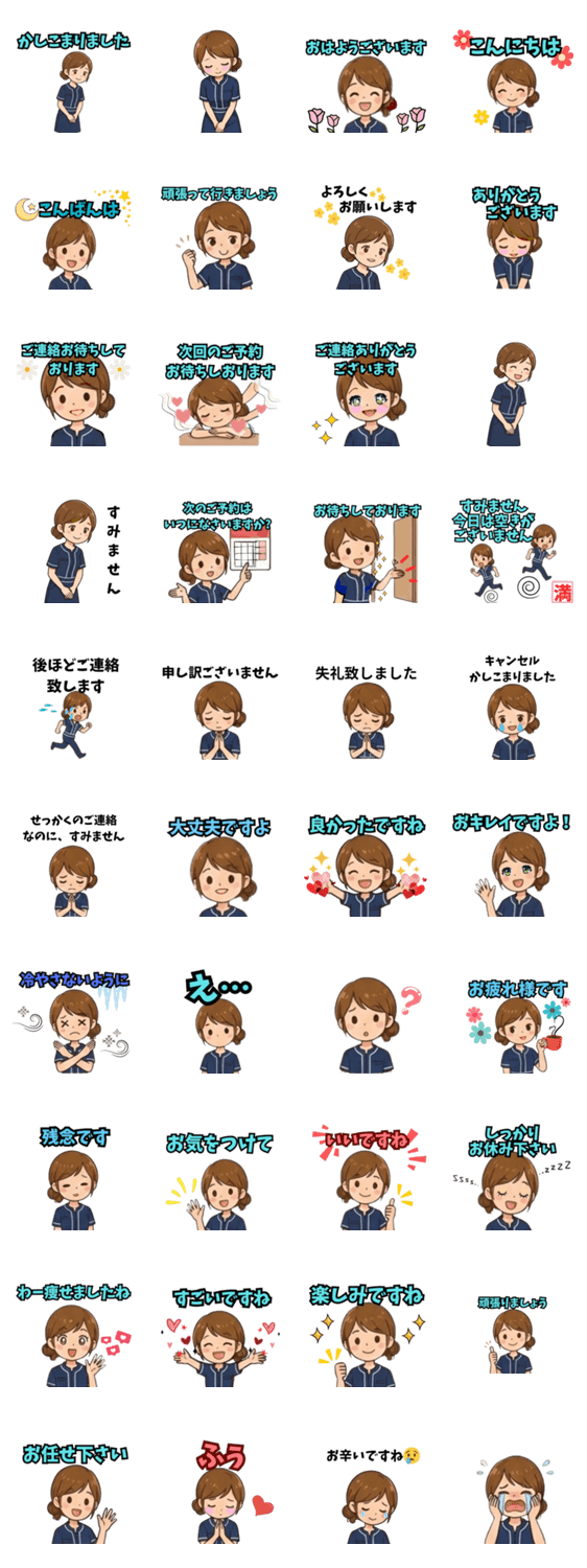サロンワークでそのまま使える接客スタンプ集。ご予約対応、お礼、謝罪などお客様とのやり取りをやさしくサポート。美容、リラク、各種サービス業の方におすすめ。