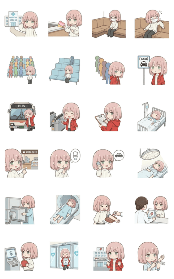 通院で病院!入院,診察,手術,検査(ピンク髪) -LINEスタンプマニア
