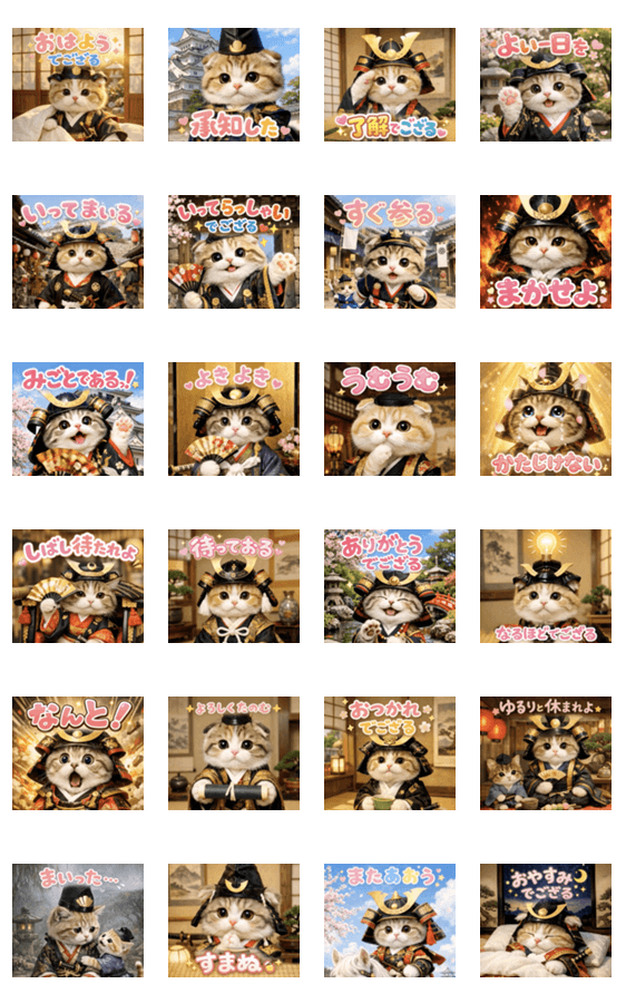 よきよき♡まかせよ!!可愛くてかっこいい♪お殿様にゃんこが飛び出して動くポップアップスタンプです。猫
