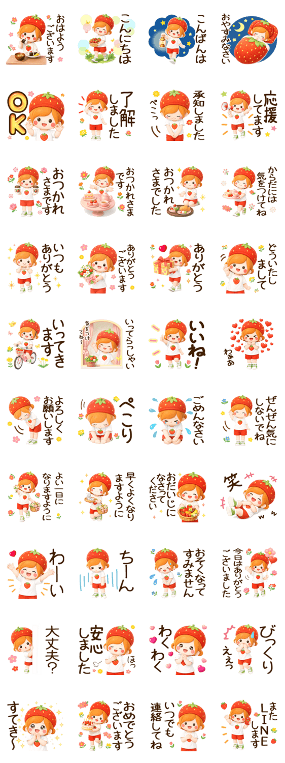 ずっと使える♡優しい日常スタンプ♡苺帽子 -LINEスタンプマニア