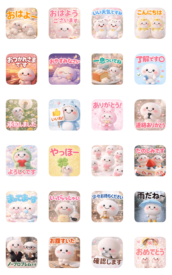 シンプルな白くて丸い人♡ずっと使えるスタンプ/うごく/3D/しろくてまるい人間/挨拶/無難/基本/敬語/ポップアップ/気づかい/飛び出す/動く/でかもじ/デカ文字/山田まぽん作