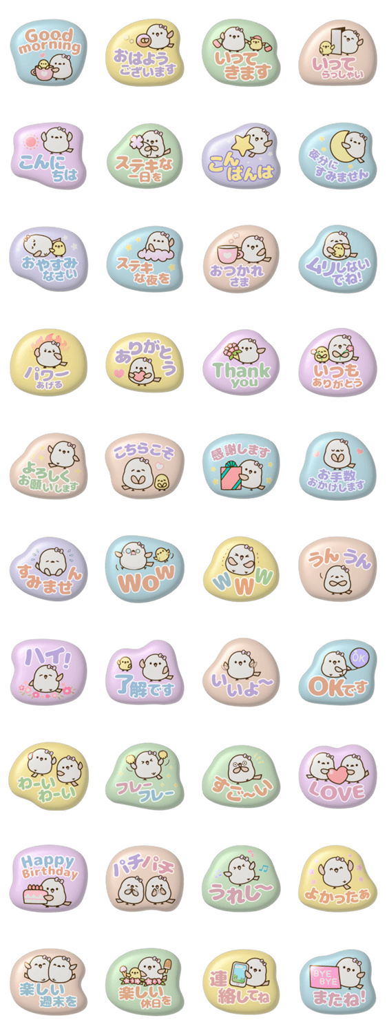 | スタンプ説明 | 人気の「ぷっくりシール風」♪ シマエナガの「でか文字スタンプ」です♪ずっと使える言葉を揃えました♫ 初心者の方も、家族や友人にも使いやすい、毎日の必需品です♪ |