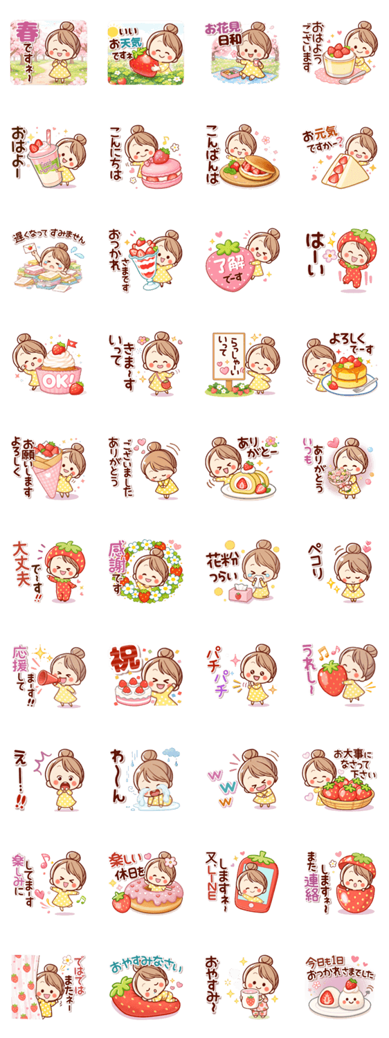苺づくし♡春の可愛い女子 -LINEスタンプマニア