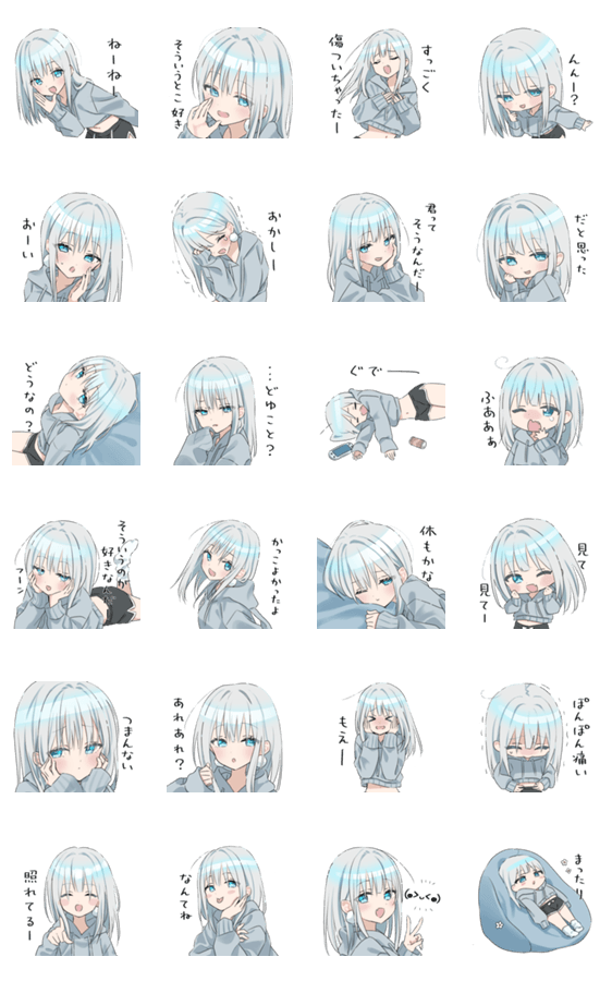 部屋着の女の子(銀髪)3 -LINEスタンプマニア