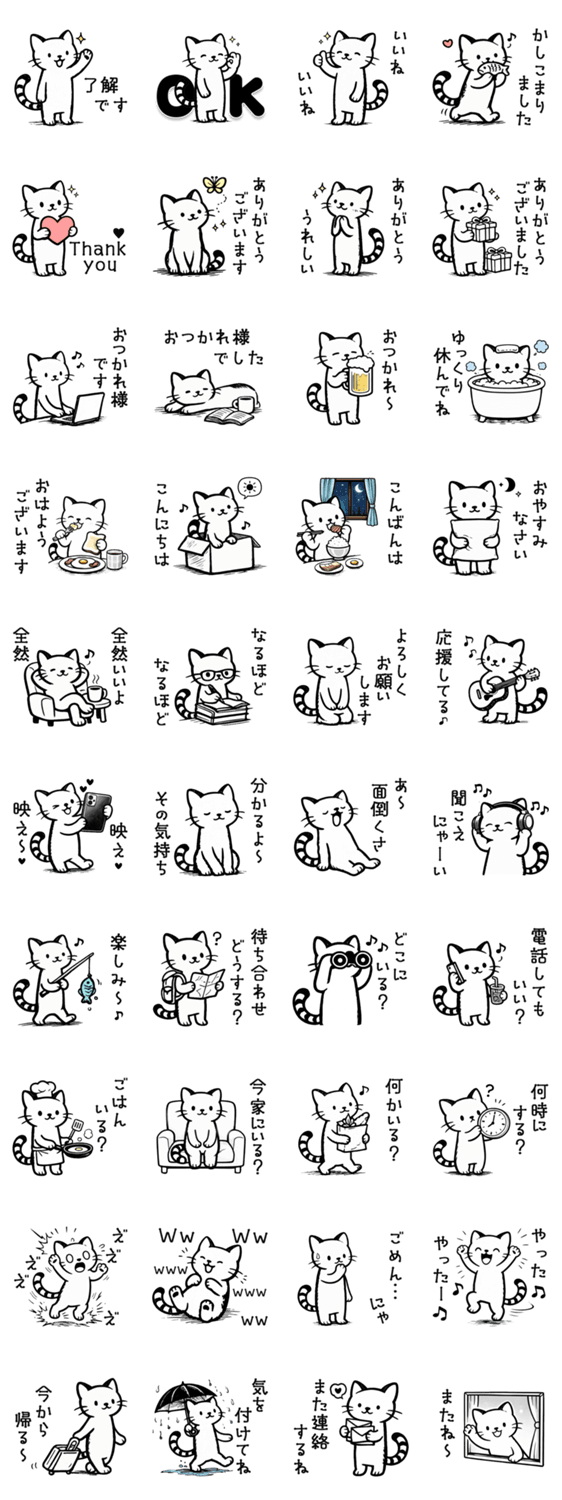 使える♡にゃんこスタンプ・猫・ねこ・ネコ・しましま・毎日・使える・可愛い・面白い・シンプル・モノクロ