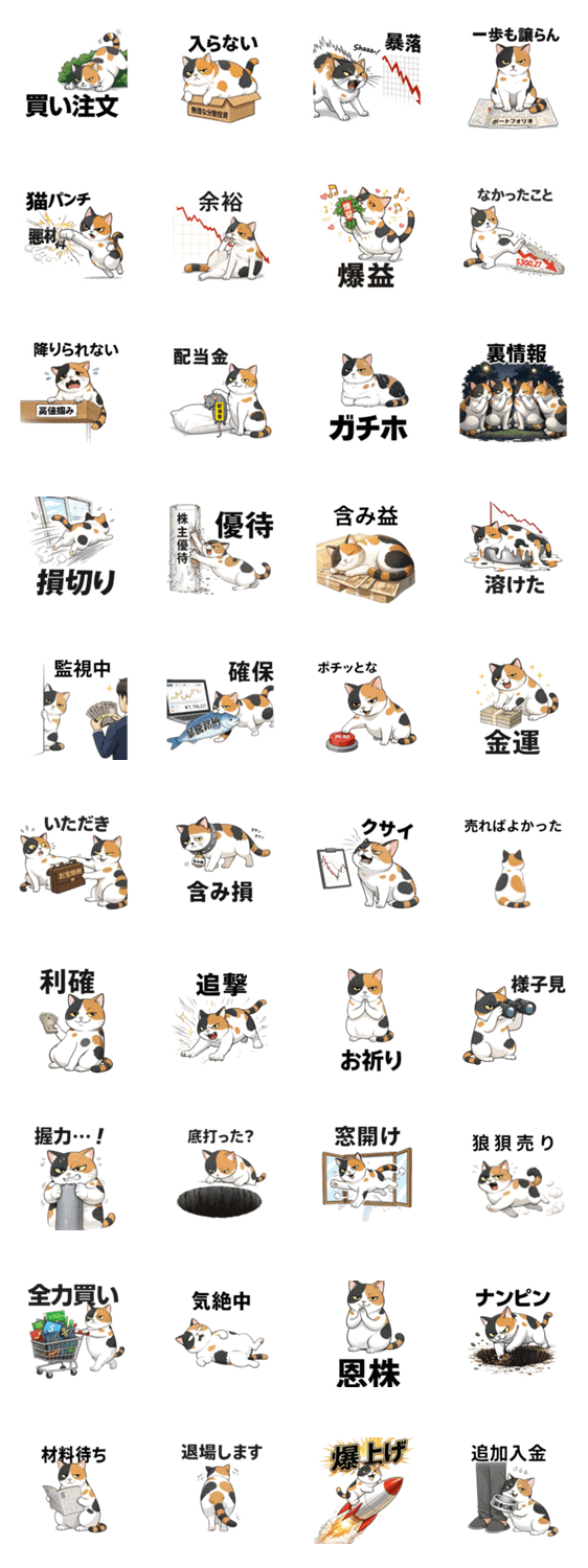 癒し処 猫ハウス 三毛猫ひろの投資スタンプ -LINEスタンプマニア