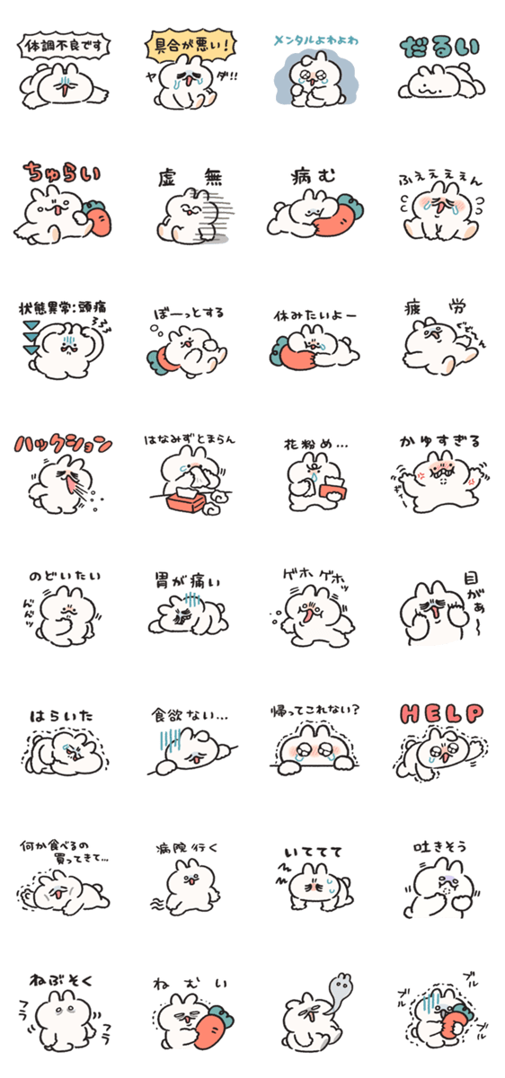 体調不良なうさぎときどきにんじん -LINEスタンプマニア