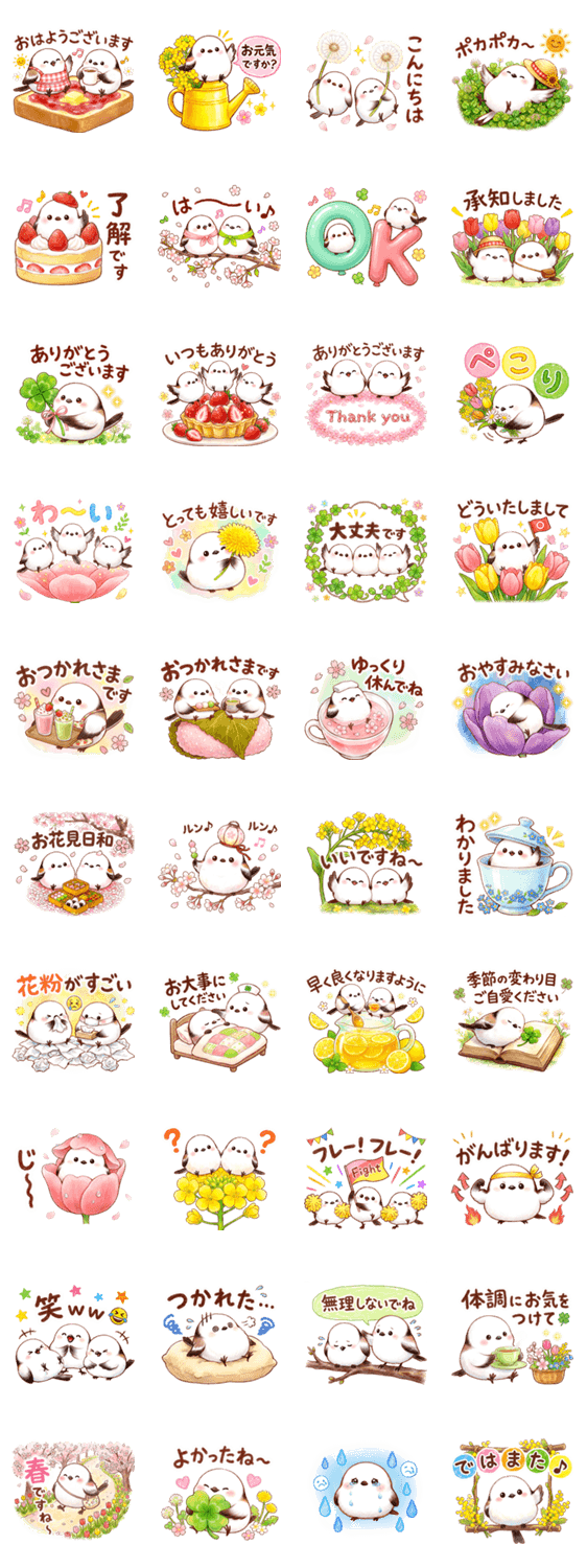 春の毎日に使えるシマエナガのスタンプ♪ (春・鳥・敬語・丁寧・日常・挨拶・連絡・気づかい・桜・お花見・花粉症・花・癒し・大人・水彩・可愛い・やさしい)
