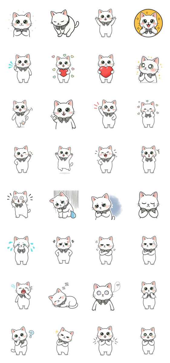 むっちり可愛い白猫「むっちりももら」のセリフなしリアクション編。OK・うんうん・ハート・泣くなど、日常で使いやすい感情がたっぷり!会話がもっと楽しくなる♪