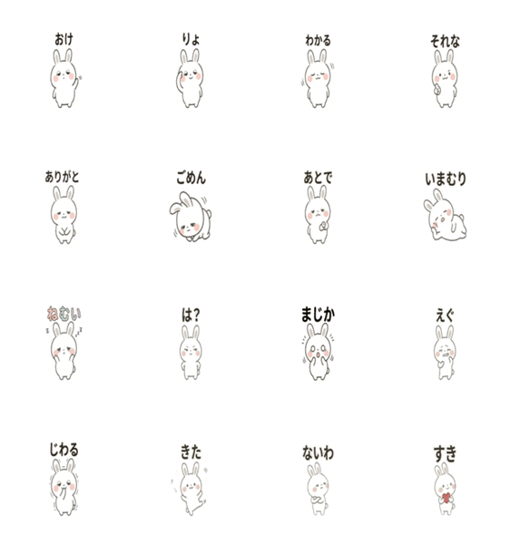 毎日使える!シンプルで使いやすい一言うさぎスタンプ。あいさつやリアクションにぴったり!