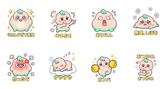 感情に合わせて膨らんだりしぼんだり!ポップコーンのように動くパフ・ベイビーの日常スタンプ。ゆるい表情とダイナミックな動きで、毎日のトークを楽しく盛り上げます。