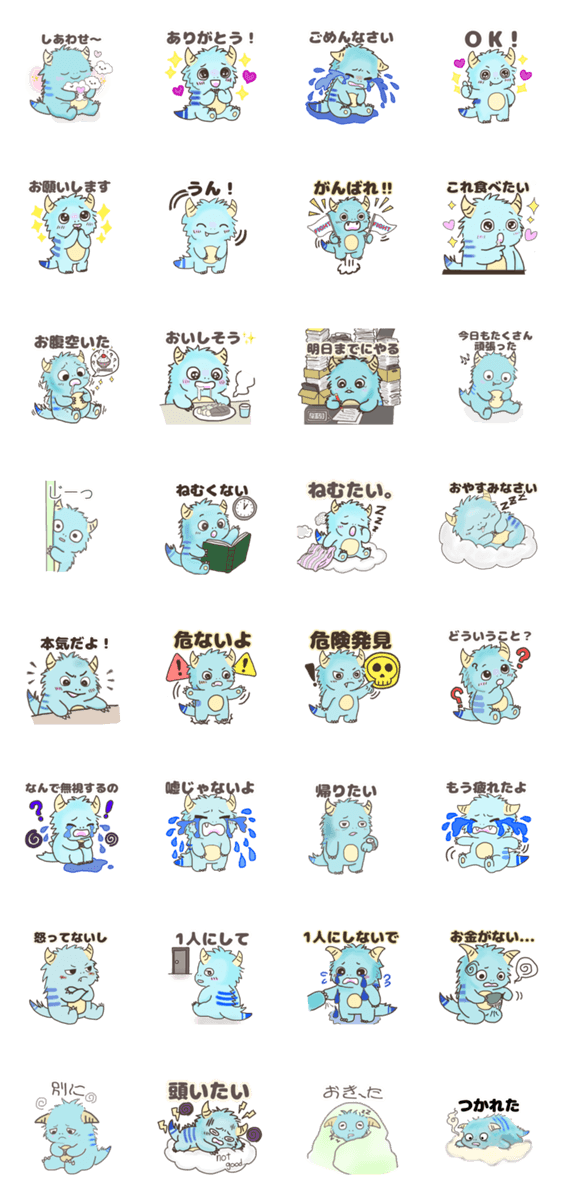 てとてと歩く、水色の小さな恐竜「アオくん」の毎日。 日常でつかえるリアクションを詰め込みました。