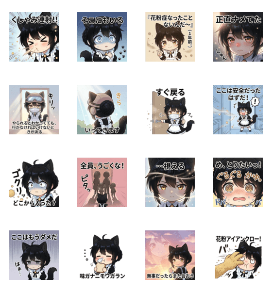 「教えてナナ」シリーズより「ナナ」のスタンプが登場!第7弾は、花粉パニック映画編。つら~い花粉症の季節のコミュニケーションをやさしく助けるスタンプ集♪