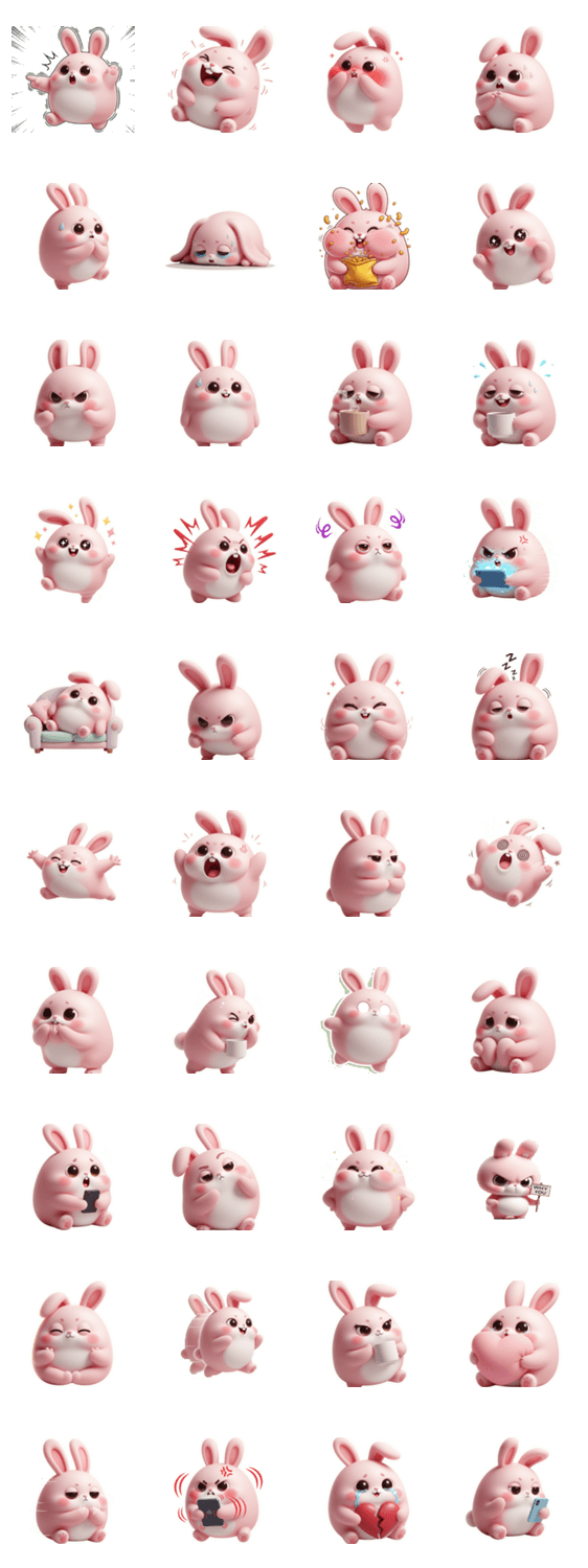 プリプリ怒って頬を膨らませた、お尻がチャームポイントのピンクのうさぎスタンプ!ムカつくことや不満があるとき、このスタンプで可愛くアピールしましょう。そのふくれっ