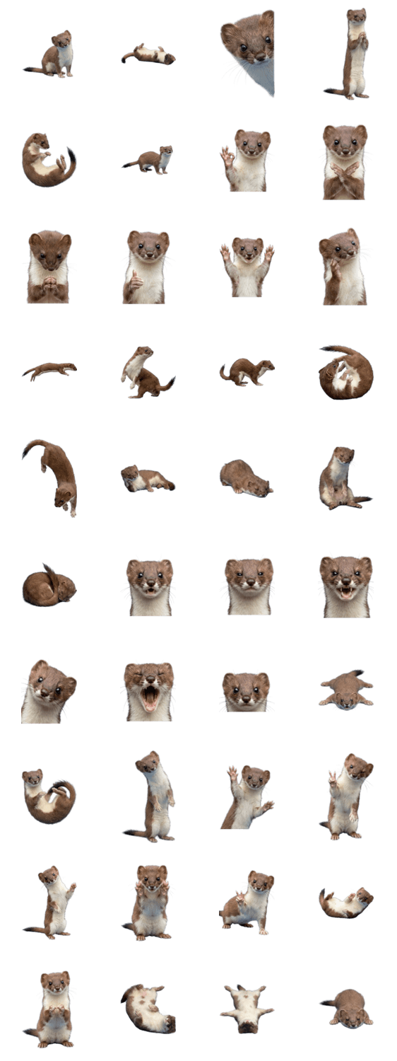 写真風リアル動物イタチ科小動物白い毛冬毛かわいいもふもふ癒し系ナチュラル自然観察人気日常トーク用LINEスタンプ可愛い動物素早い野生レア動物 ※このスタンプはトークルームで大きく表示されるBIGスタンプです。